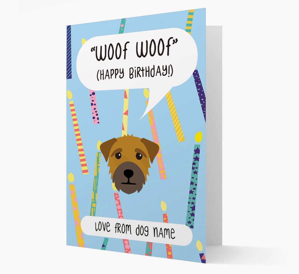 'Woof Woof' - Personalized Border Terrier Birthday Card