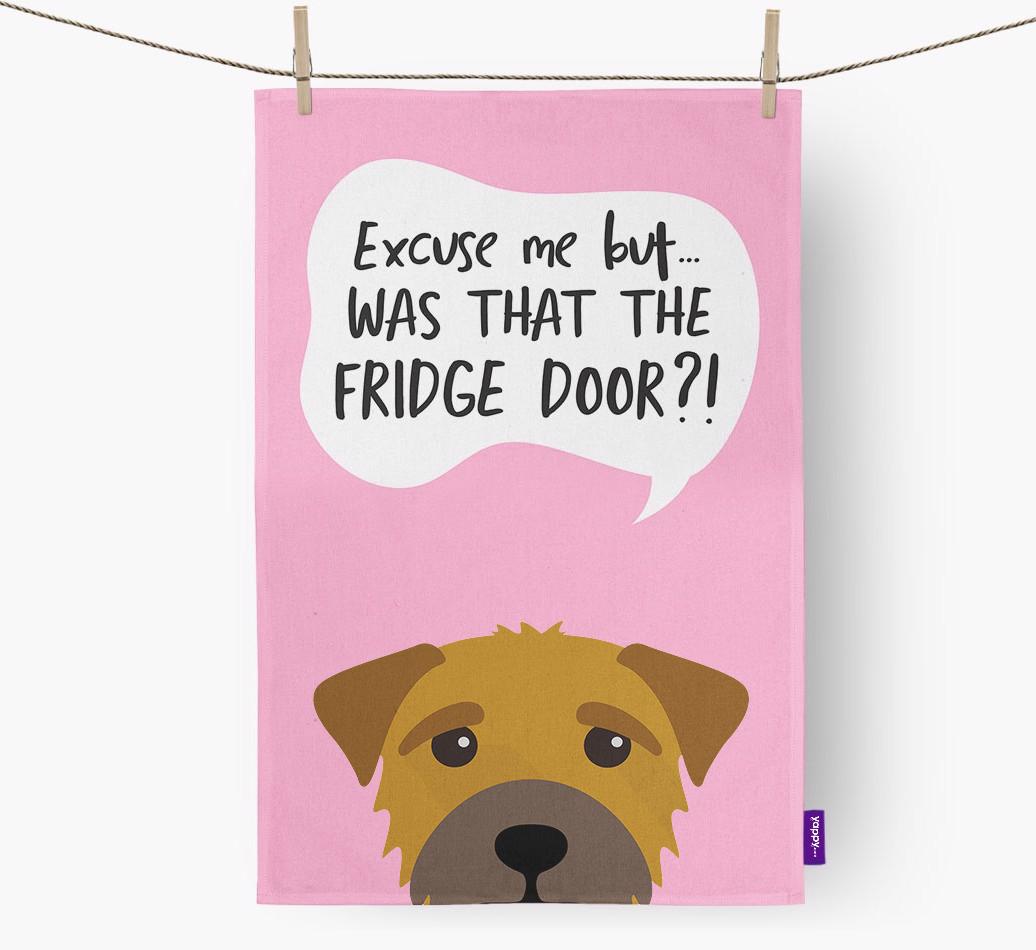 'Was That The Fridge Door?!' - Personalized Border Terrier Dish Towel