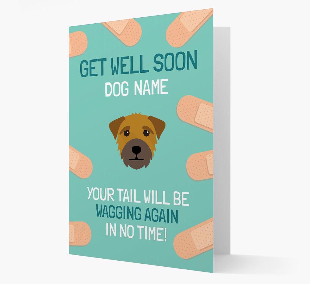 'Tail Wagging Again in No Time!' - Personalized Border Terrier Get Well Soon Card