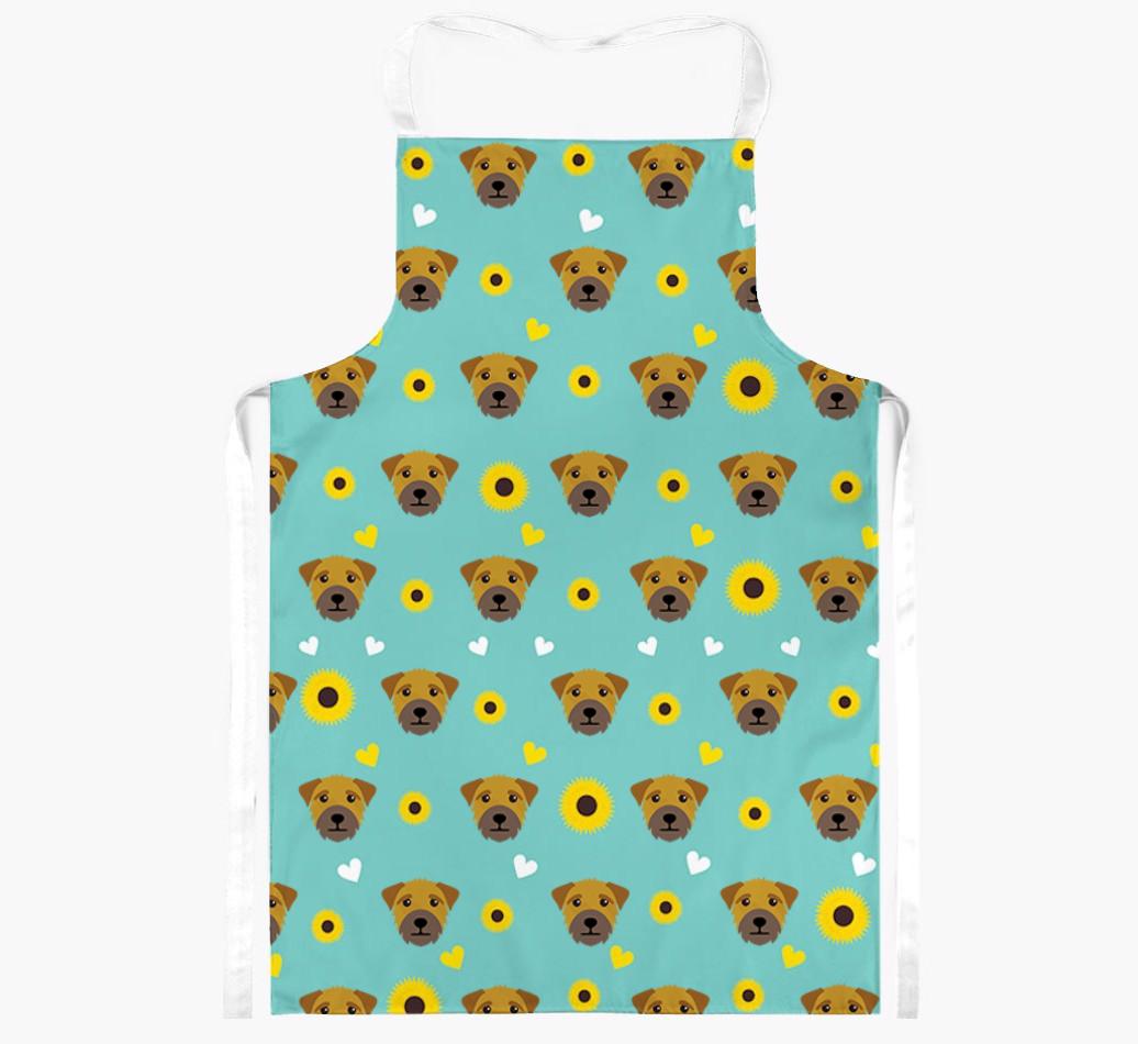 This apron has a delightful sunflower and heart pattern, and best of all - it's personalized with Border Terrier's face too! This cute and colorful apron is sure to put a smile on every dog lover's face.