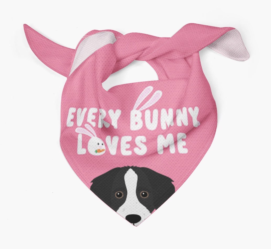 Tailored with the fabulous saying: 'Every Bunny Loves Me', this bandana is the perfect addition to your Bordoodle's wardrobe! Available in four egg-ceptional colors and personalized with your Bordoodle's icon, this is the perfect pawchase for Easter!