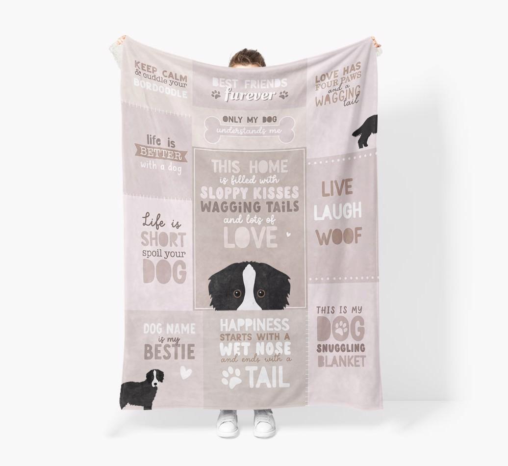 Patchwork Quotes: Personalized Bordoodle Premium Sherpa Fleece Blanket