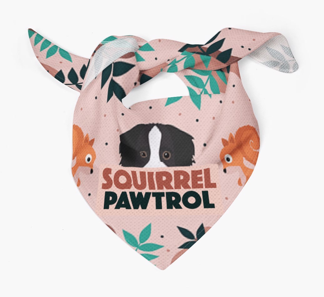 Featuring a furbulous squirrel pattern and personalized with your Bordoodle's icon, Bordoodle is sure to go nuts for this bandana!