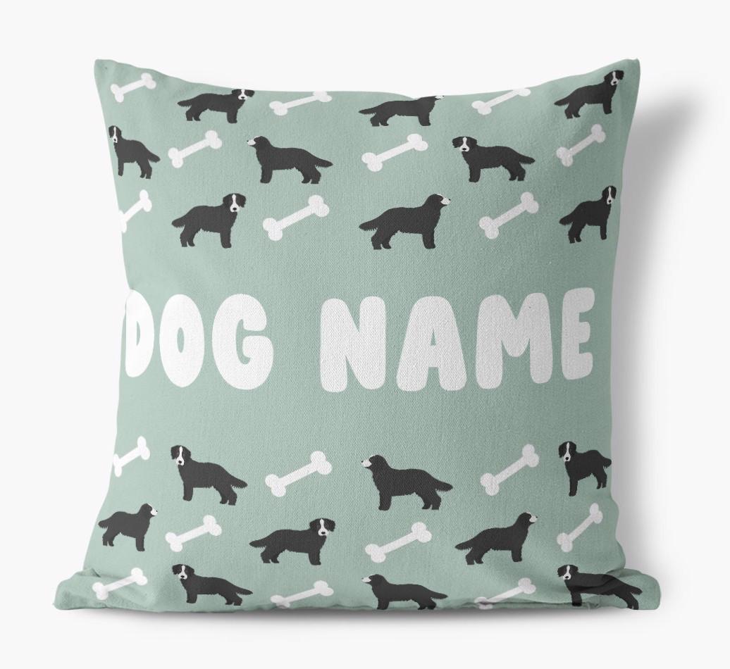 Personalized with Bordoodle’s name against a background of Bordoodle icons and bones, this gorgeous pillow is full of pawsonality.