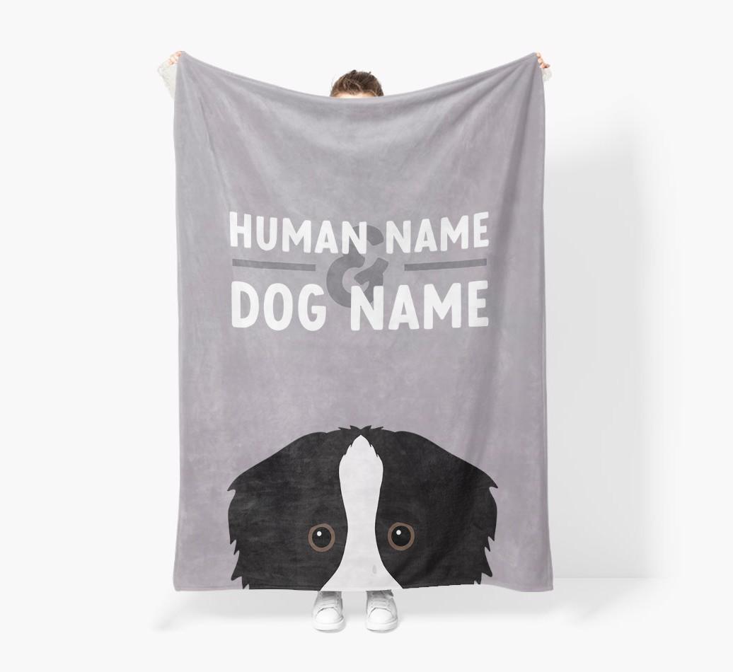 Human & Dog Name: Personalized Bordoodle Premium Sherpa Fleece Blanket