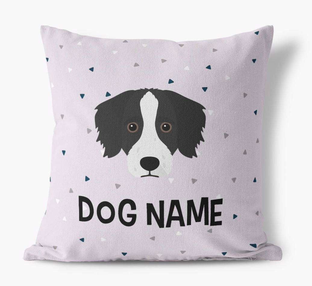 Featuring a stylish triangle pattern, this pillow is available in 5 wagnificent colors and is personalized just for Your Bordoodle, making is extra special.
