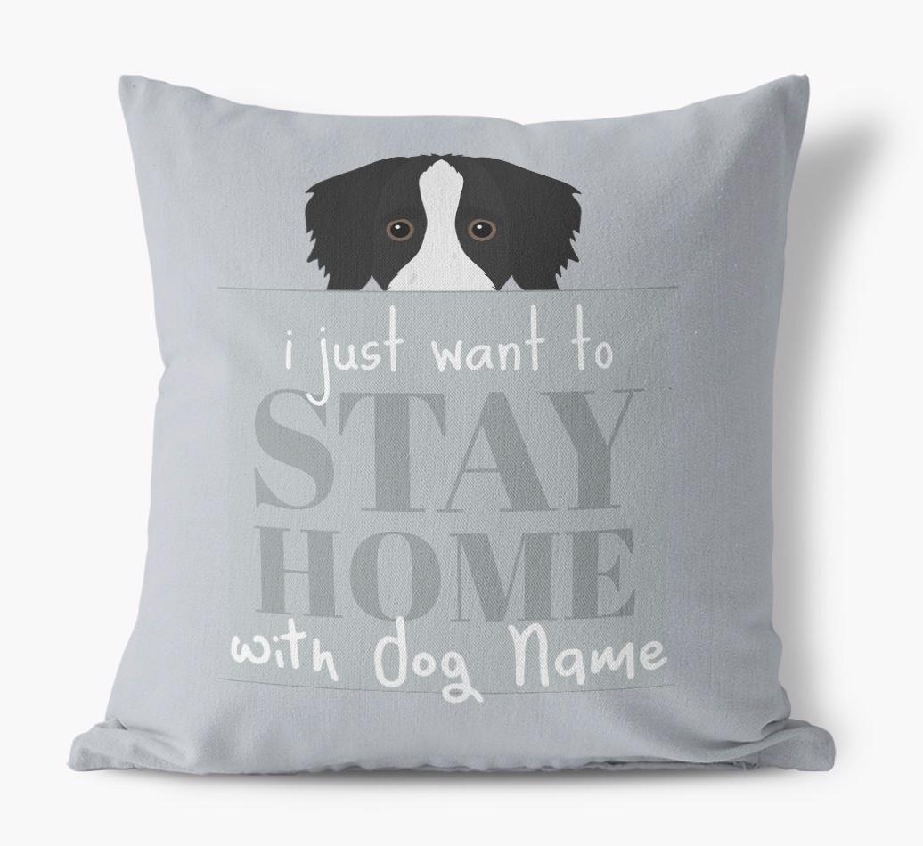 Stay Home: Personalized Bordoodle Canvas Pillow