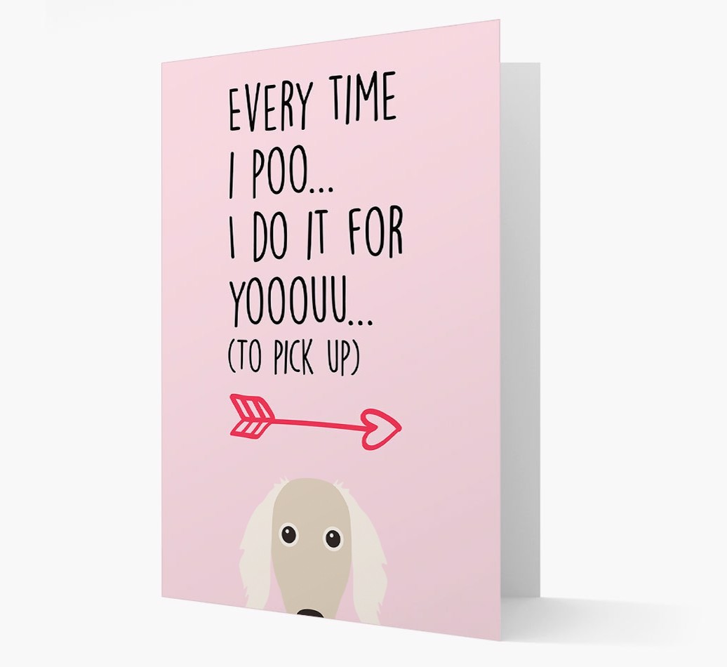 Printed with the words ‘Everytime I poo… I do it for youuuuu (to pick up)’, this lyrical card is personalized with our famous Borzoi icon – so it’s clear who’s been leaving you all those delightful ‘gifts’ to pick up!