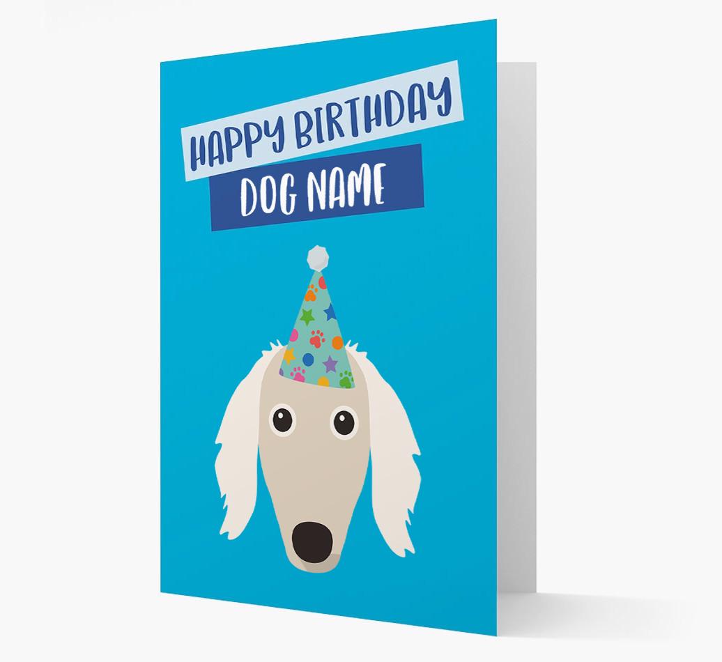 Why not wish Your Borzoi Happy Birthday in true pawty style with this party hat birthday card.