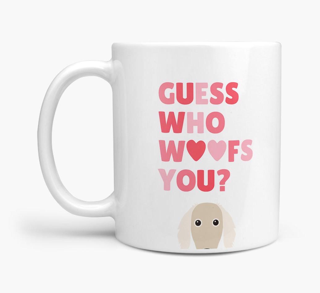 Personalized with Borzoi's cute face, this adorable mug is perfect for showing off the one who "woofs" you - how sweet!
