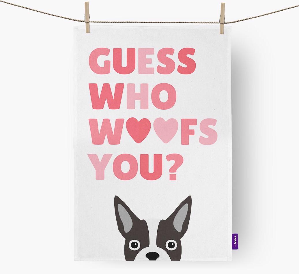 'Guess Who Woofs You?' - Personalized Boston Terrier Dish Towel