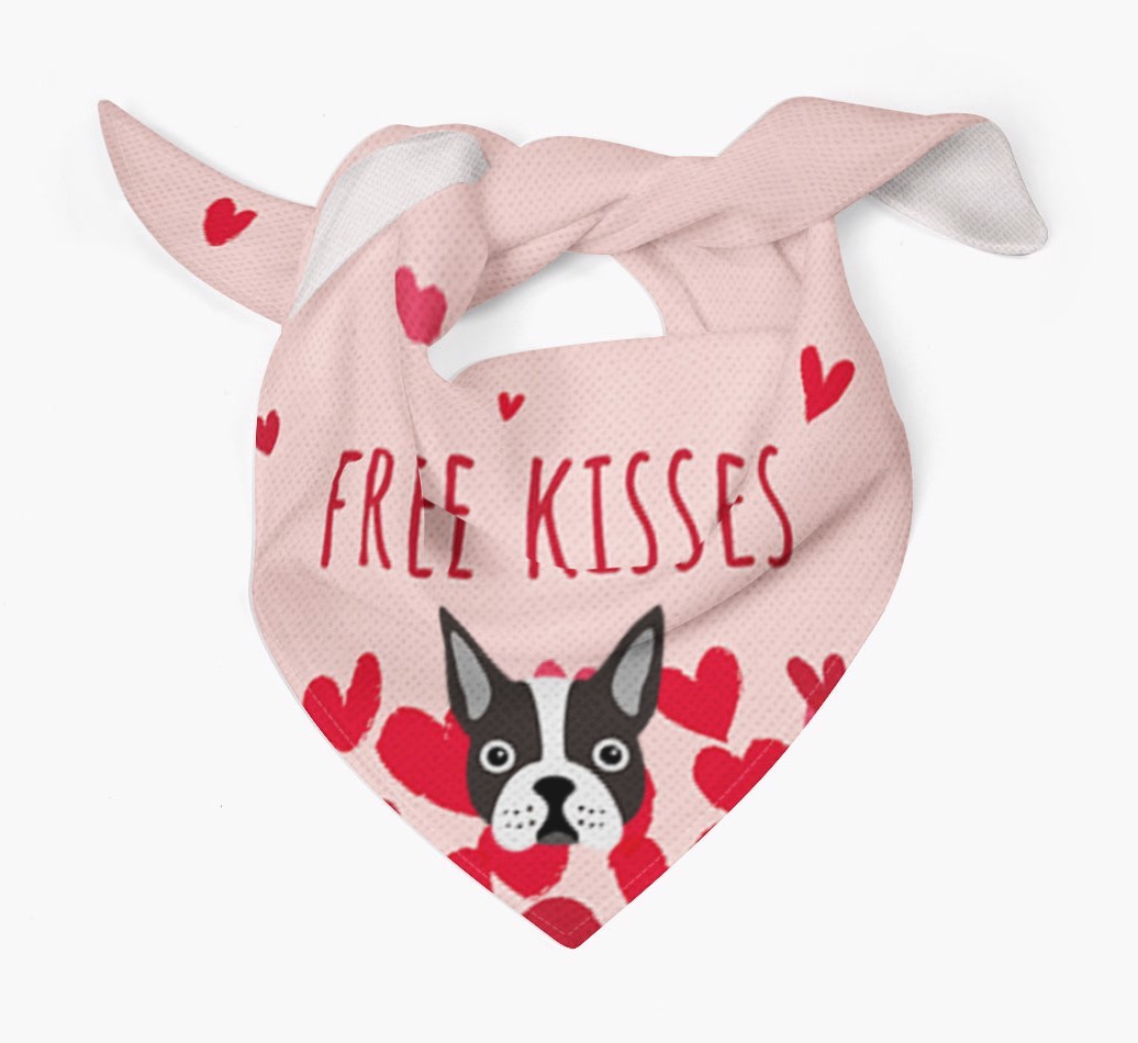 'Free Kisses' - Personalized Boston Terrier Bandana