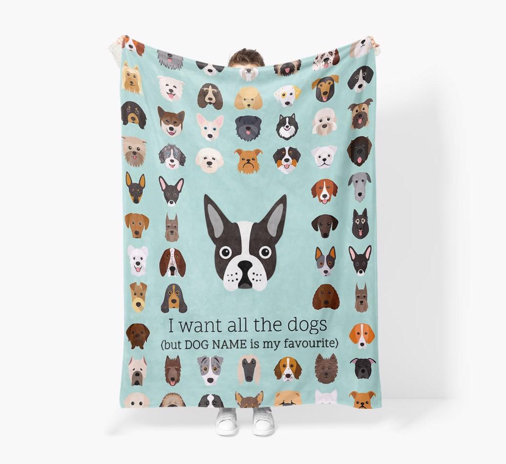 'All The Dogs' - Personalized Boston Terrier Blanket: Premium Sherpa Fleece