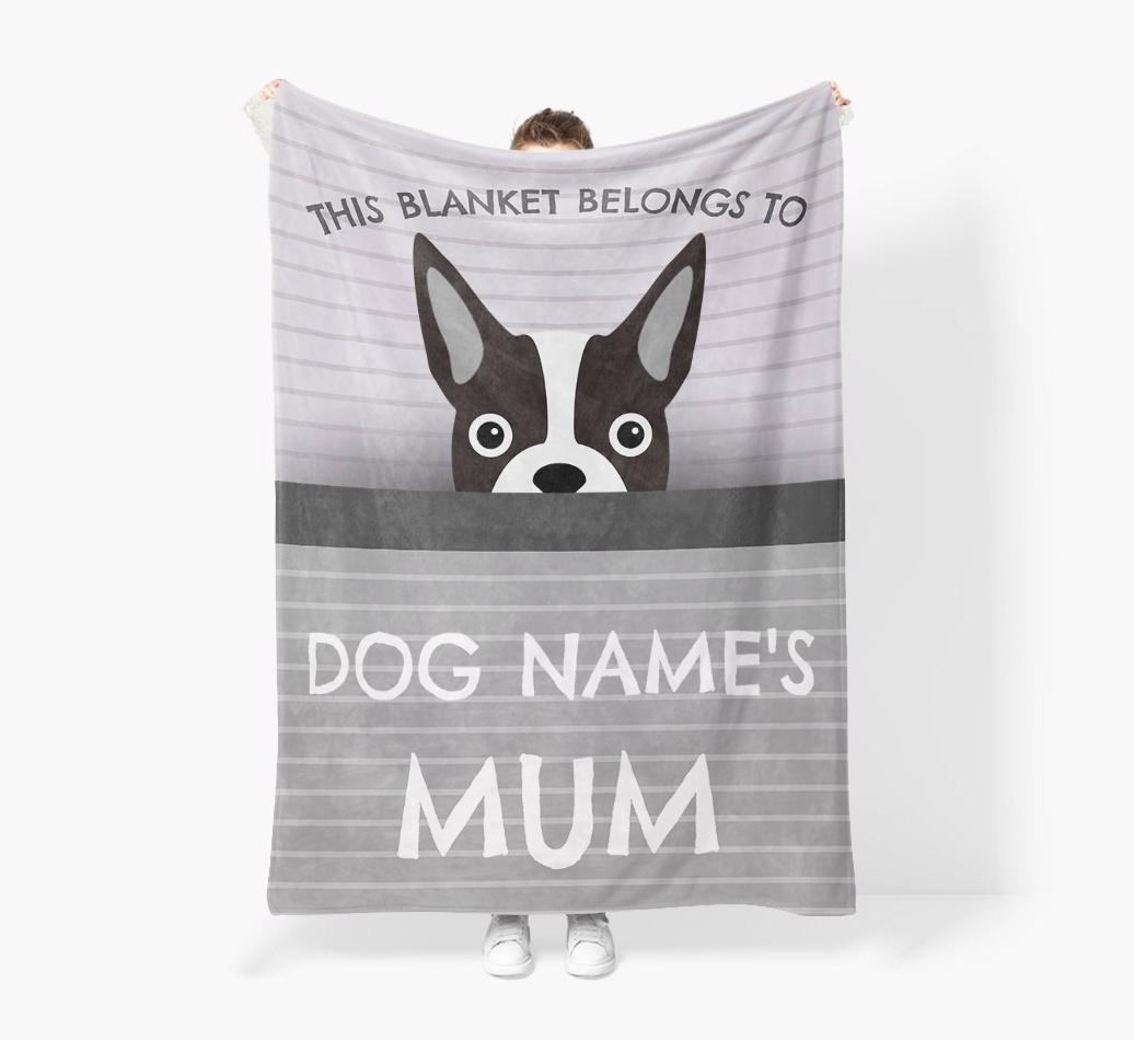 'This Blanket Belongs To...' - Personalized Boston Terrier Blanket: Premium Sherpa Fleece