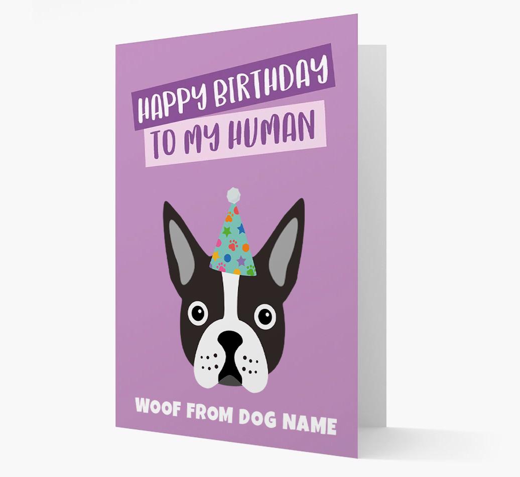 'Happy Birthday to My Human' - Personalized Boston Terrier Card