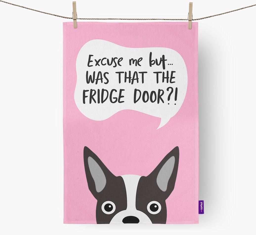 'Was That The Fridge Door?!' - Personalized Boston Terrier Dish Towel