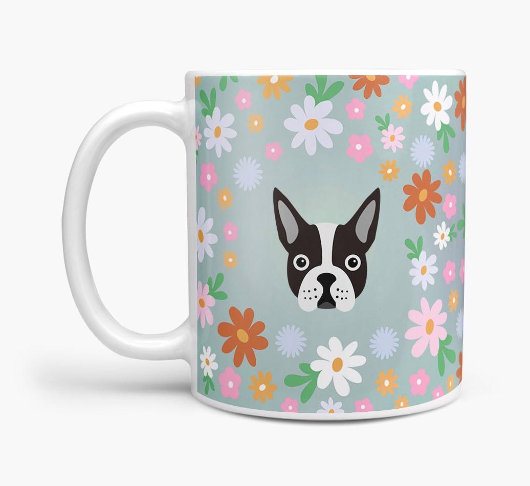 Featuring a colorful bunch of flowers, this mug is printed with the words 'woofly grandma' on one side of the mug and your Boston Terrier's cute icon on the other. Bloomin' lovely!