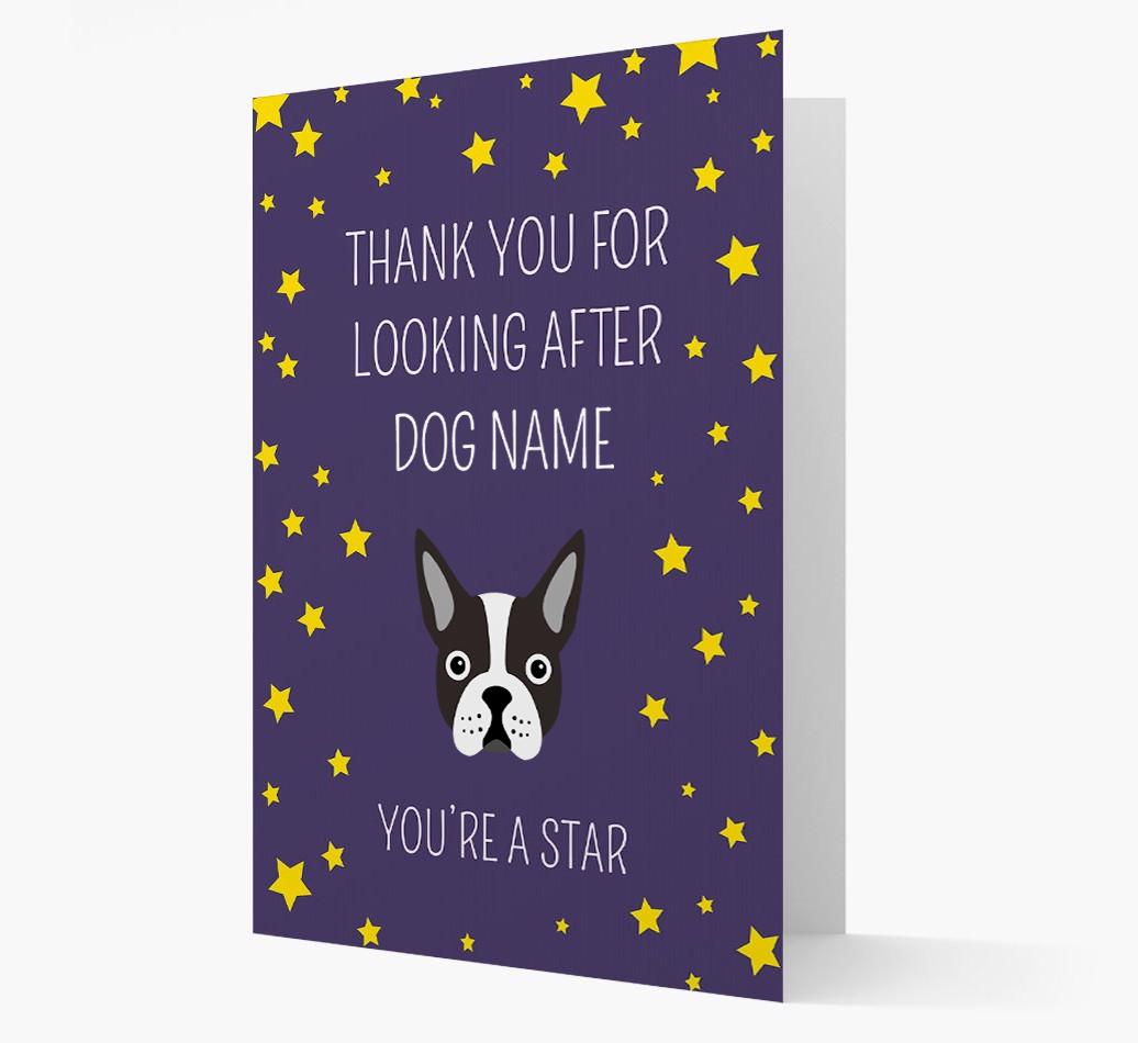 If you’ve got a star in your life that treats Your Boston Terrier as their own, what better way to them than with our personalized ‘You’re a star’ Thank You card.