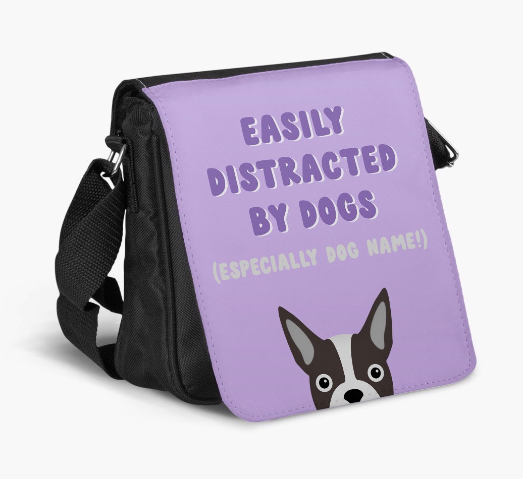 Shoulder Bag 'Easily Distracted by Dogs' with Boston Terrier Silhouette