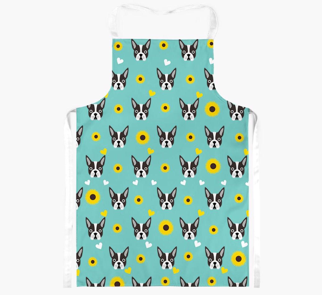 This apron has a delightful sunflower and heart pattern, and best of all - it's personalized with Boston Terrier's face too! This cute and colorful apron is sure to put a smile on every dog lover's face.