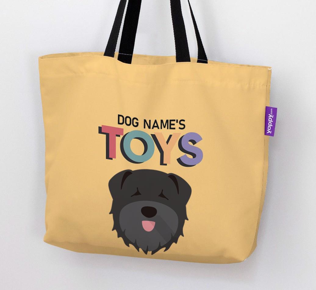 Don’t worry, we’ve got you covered with this pawsonalized canvas bag made for your Bouvier Des Flandres’s toy collection!