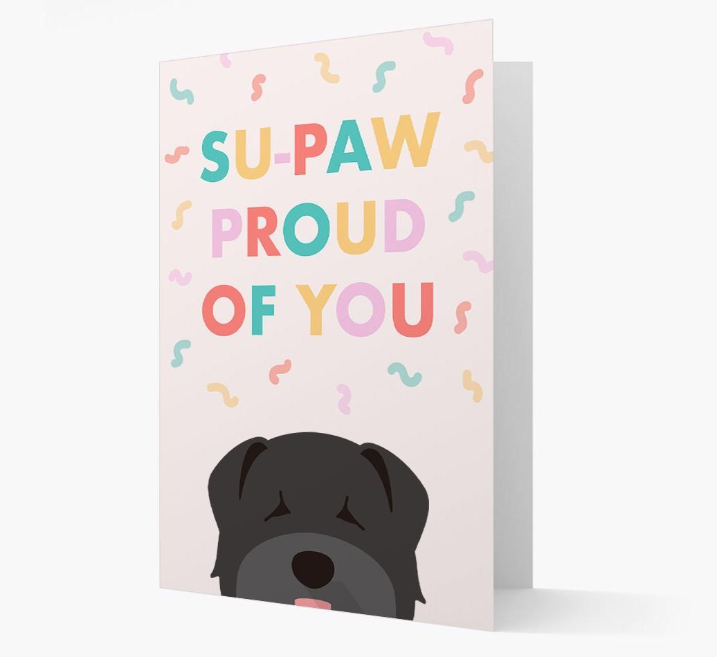 Has your loved one achieved something extra furbulous? Let them know that you and Bouvier Des Flandres are su-paw proud of them with this cute card!