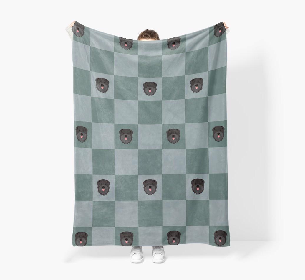 'Checkboard' - Personalized Bouvier Des Flandres Blanket: Premium Sherpa Fleece