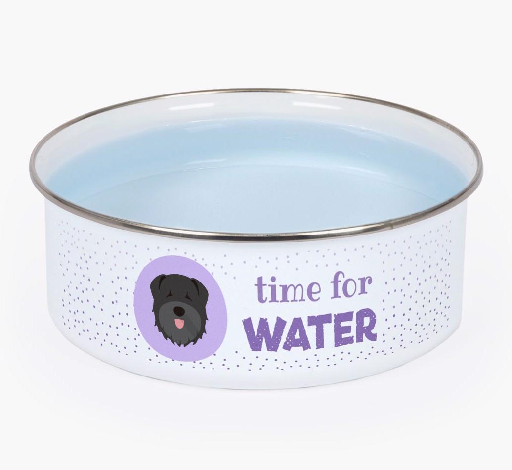 Time For Water: Personalized Enamel Bouvier Des Flandres Bowl