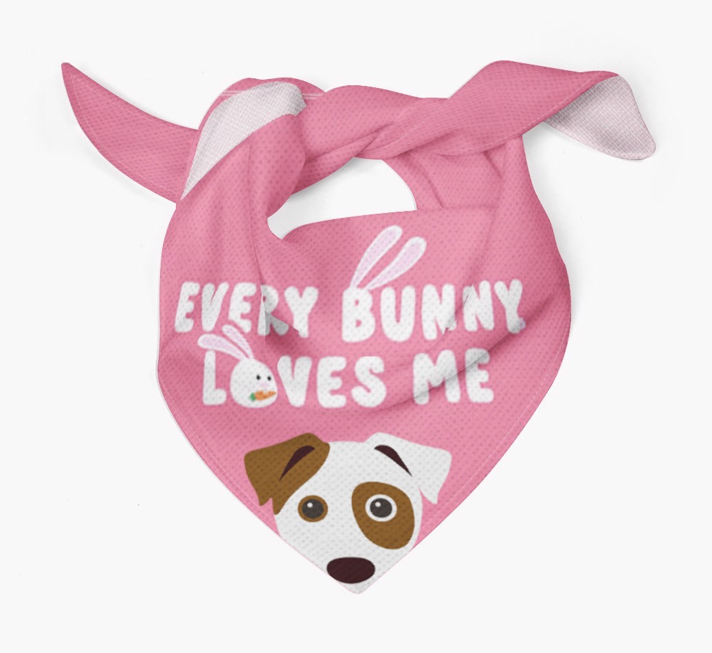 Tailored with the fabulous saying: 'Every Bunny Loves Me', this bandana is the perfect addition to your Boxador's wardrobe! Available in four egg-ceptional colors and personalized with your Boxador's icon, this is the perfect pawchase for Easter!