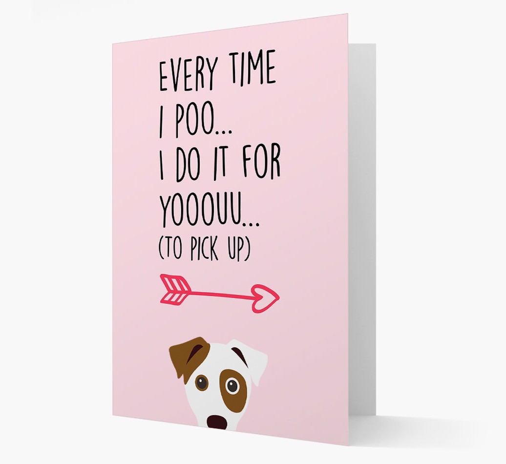 Printed with the words ‘Everytime I poo… I do it for youuuuu (to pick up)’, this lyrical card is personalized with our famous Boxador icon – so it’s clear who’s been leaving you all those delightful ‘gifts’ to pick up!