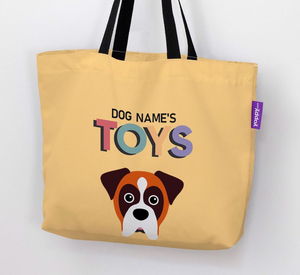 Don’t worry, we’ve got you covered with this pawsonalized canvas bag made for your Boxer’s toy collection!