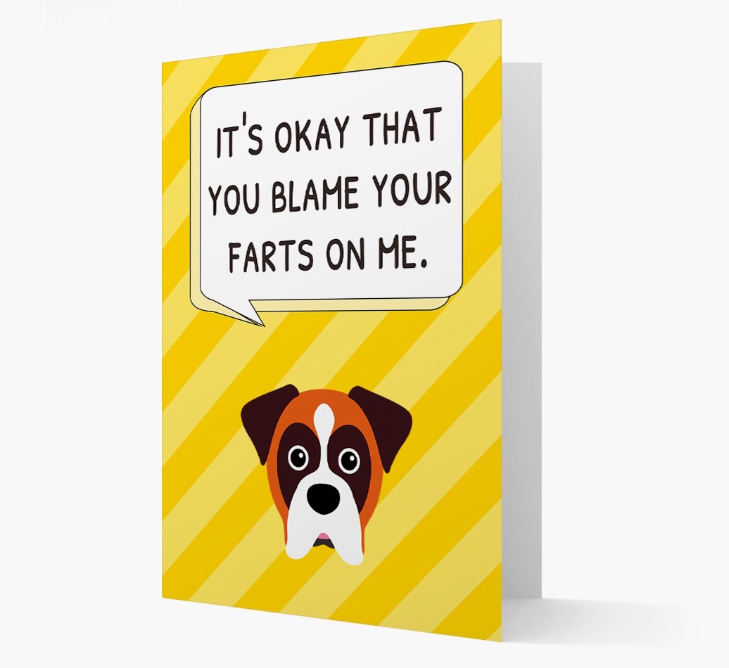 Does Your Boxer take the blame for their human's farts? Well, we think it's time your Boxer lets them know that the jig is up with this funny card!