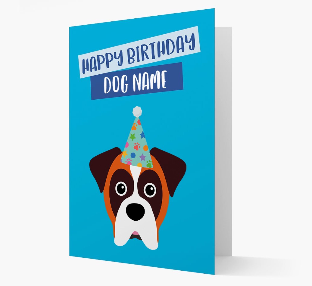 Why not wish Your Boxer Happy Birthday in true pawty style with this party hat birthday card.