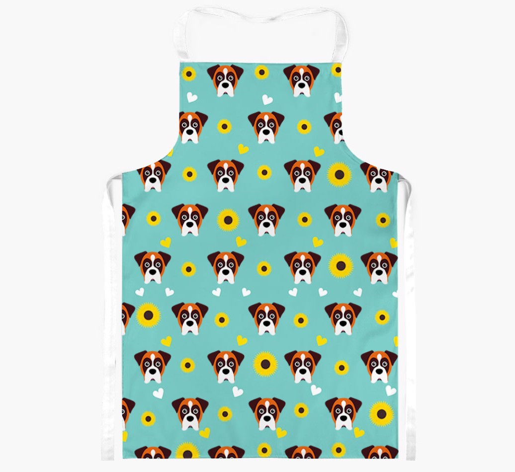 This apron has a delightful sunflower and heart pattern, and best of all - it's personalized with Boxer's face too! This cute and colorful apron is sure to put a smile on every dog lover's face.