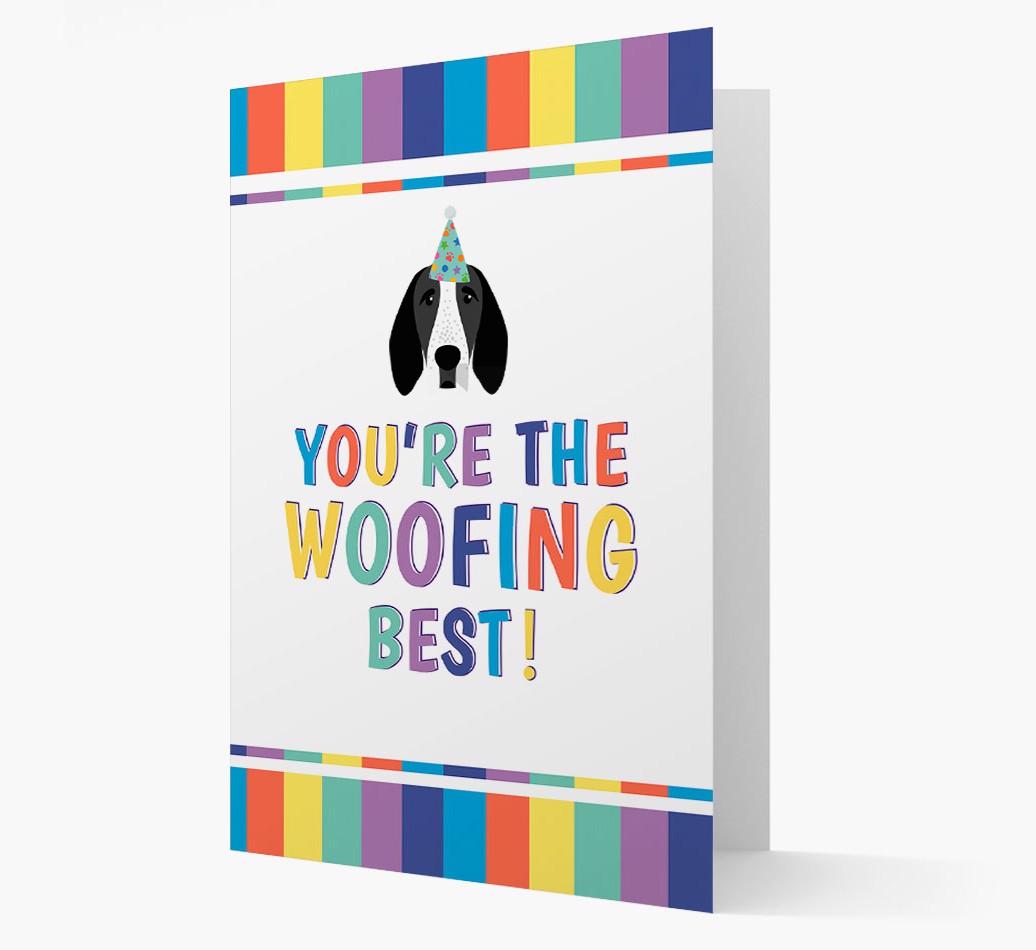 Featuring your chosen Braque D'Auvergne icon donning a pawty hat, this card is sure to go down a woofing storm!