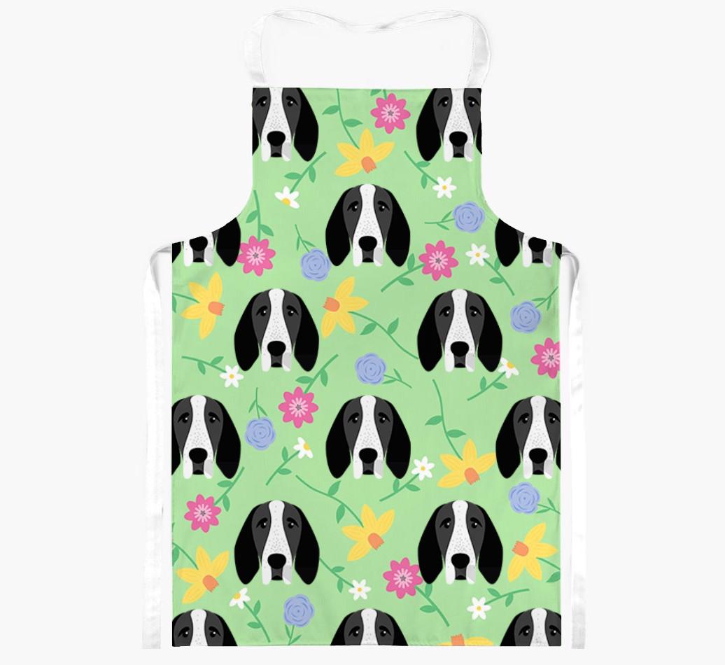Featuring a gorgeous pattern of flowers and your dog's adorable face, this vibrant apron is bursting with canine charm and flowery fun - perfect for adding a splash of color to your kitchen.