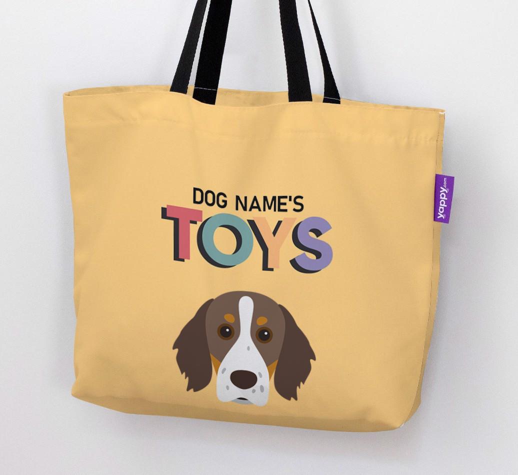 Don’t worry, we’ve got you covered with this pawsonalized canvas bag made for your Brittany’s toy collection!