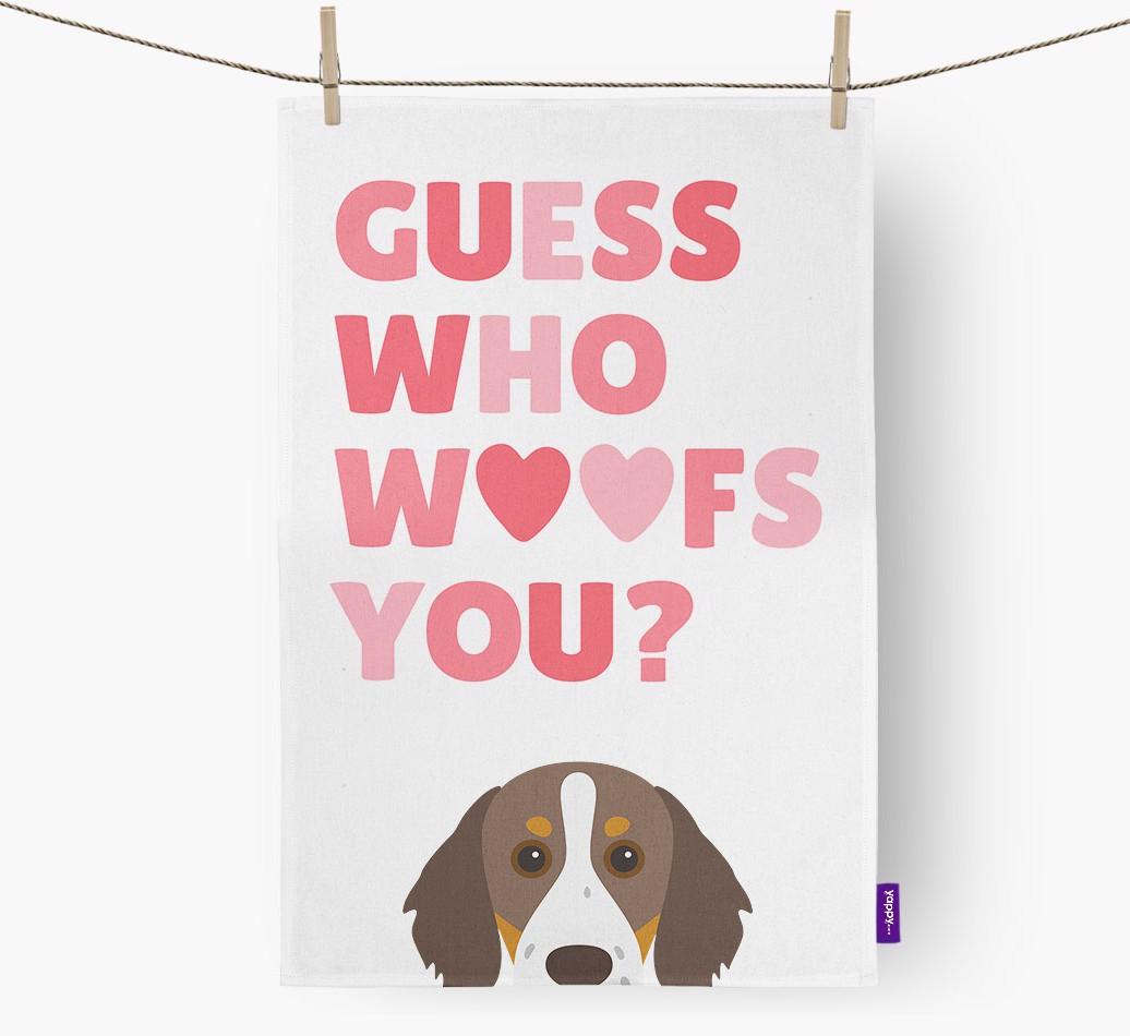 'Guess Who Woofs You?' - Personalized Brittany Dish Towel