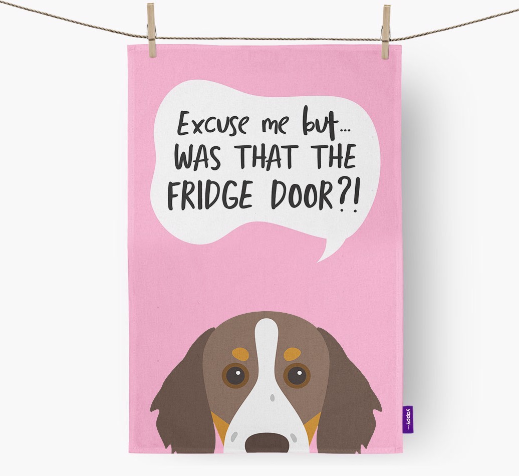 'Was That The Fridge Door?!' - Personalized Brittany Dish Towel