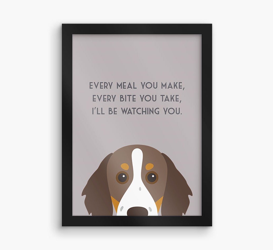 Printed with the words, ‘Every meal you make, every bite you take, I’ll be watching you’ and complete with our cute Brittany peeking from the bottom of the design, this artwork will look great on display in the kitchen or anywhere Brittany likes to watch you eat!