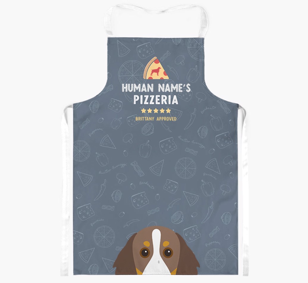 Featuring your furry friend's icon and lick of approval, plus your chosen human name, this apron is pawfect for anyone who considers themselves a pizza maestro in the kitchen. Available in a choice of 5 rustic colors, it'll make any Brittany lover happy.
