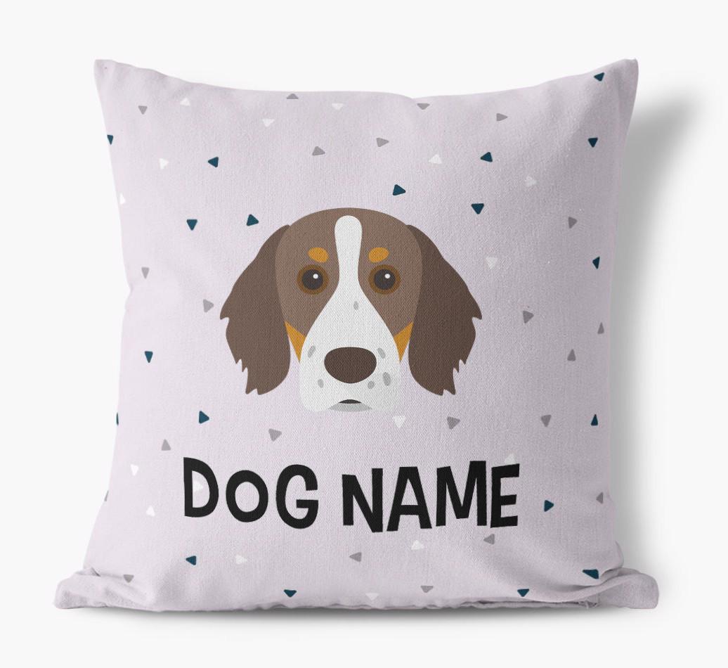 Featuring a stylish triangle pattern, this pillow is available in 5 wagnificent colors and is personalized just for Your Brittany Spaniel, making is extra special.