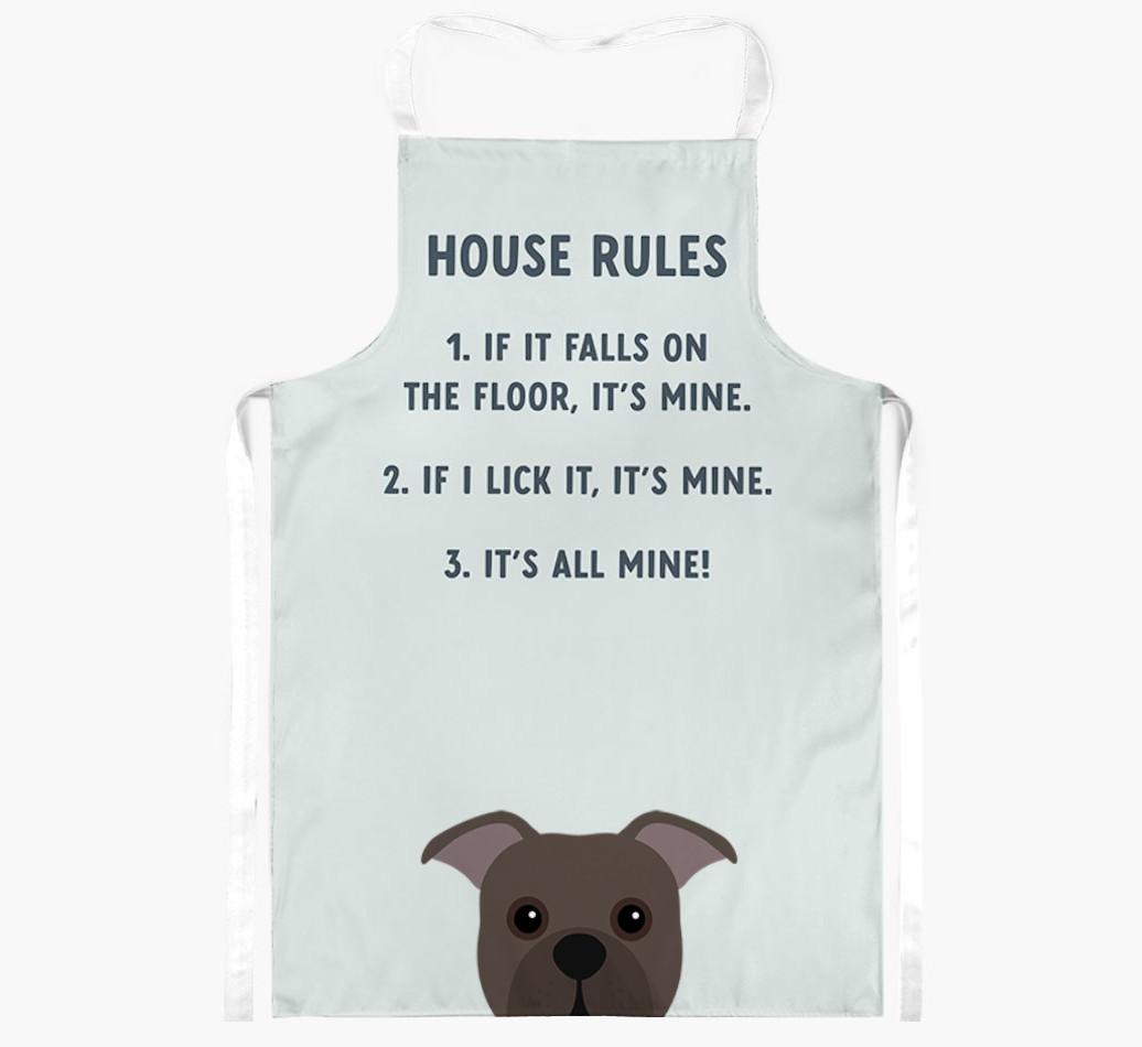A fun way to show off your greedy pup, this stylish apron is personalized with your furry friend's icon and features their rules when it comes to food.