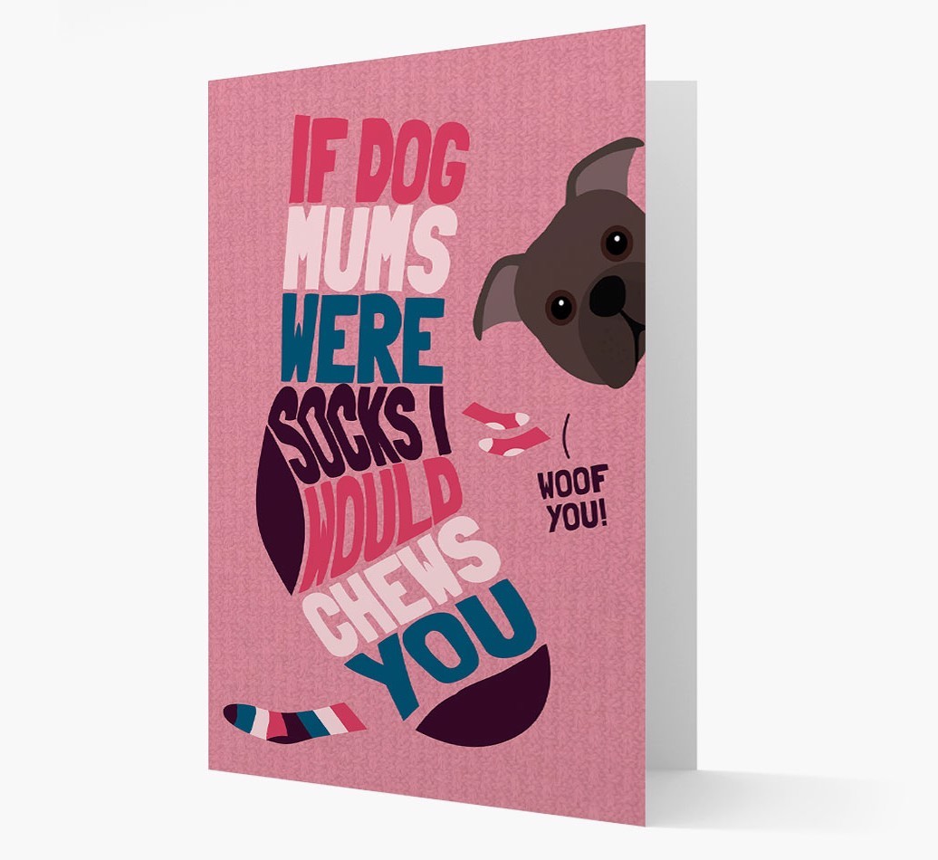 This comical card is pawfect for the Dog Mom who's pawrent to a sock-loving Bugg.