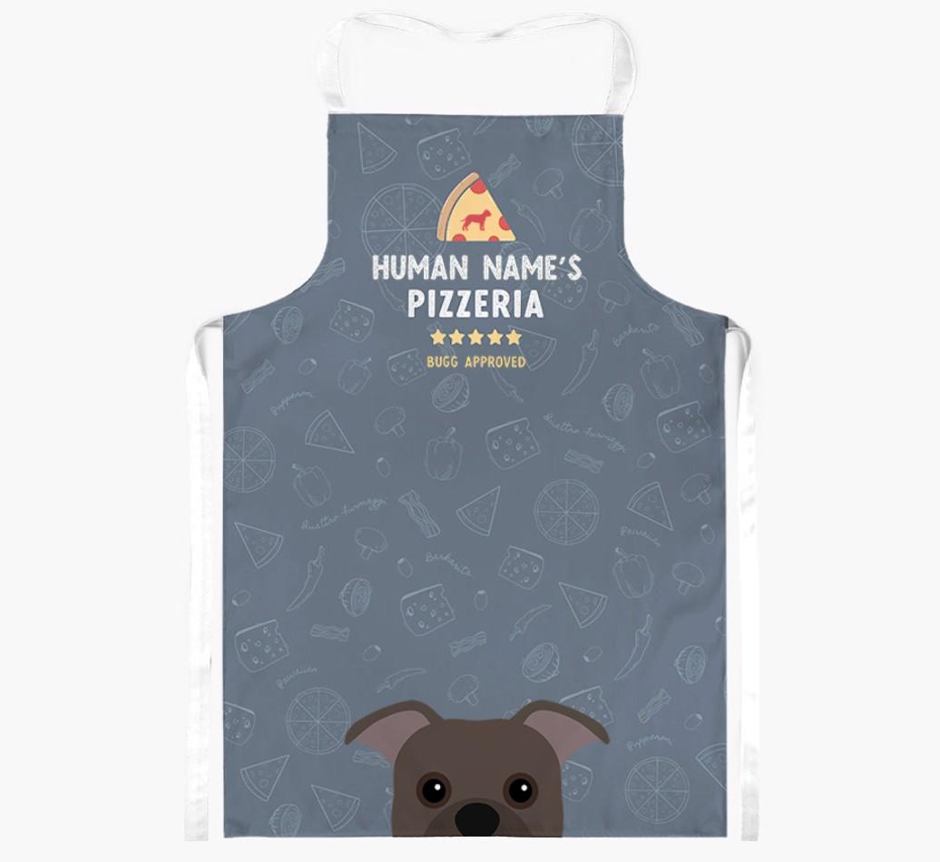 Featuring your furry friend's icon and lick of approval, plus your chosen human name, this apron is pawfect for anyone who considers themselves a pizza maestro in the kitchen. Available in a choice of 5 rustic colors, it'll make any Bugg lover happy.