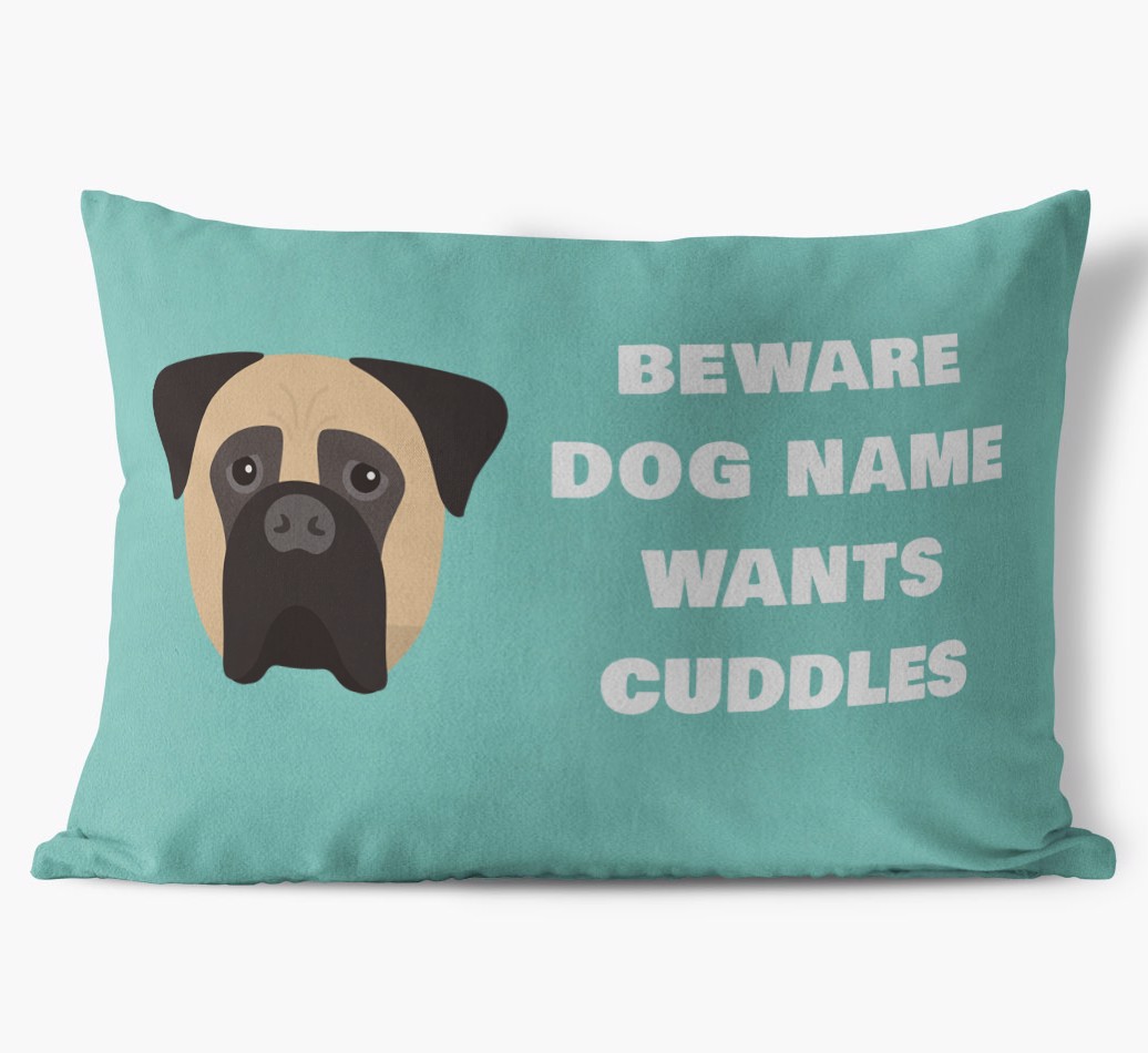 Beware of Cuddles: Personalized Bullmastiff Soft Touch Pillow