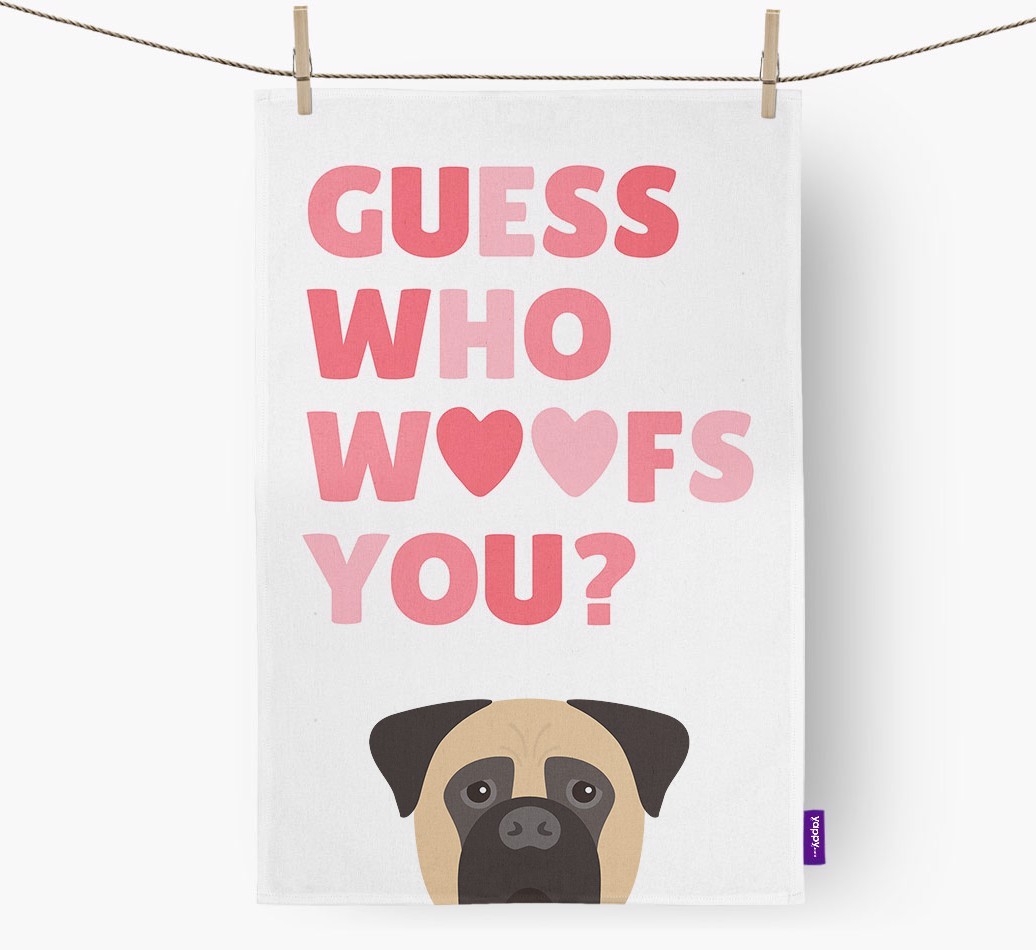 'Guess Who Woofs You?' - Personalized Bullmastiff Dish Towel
