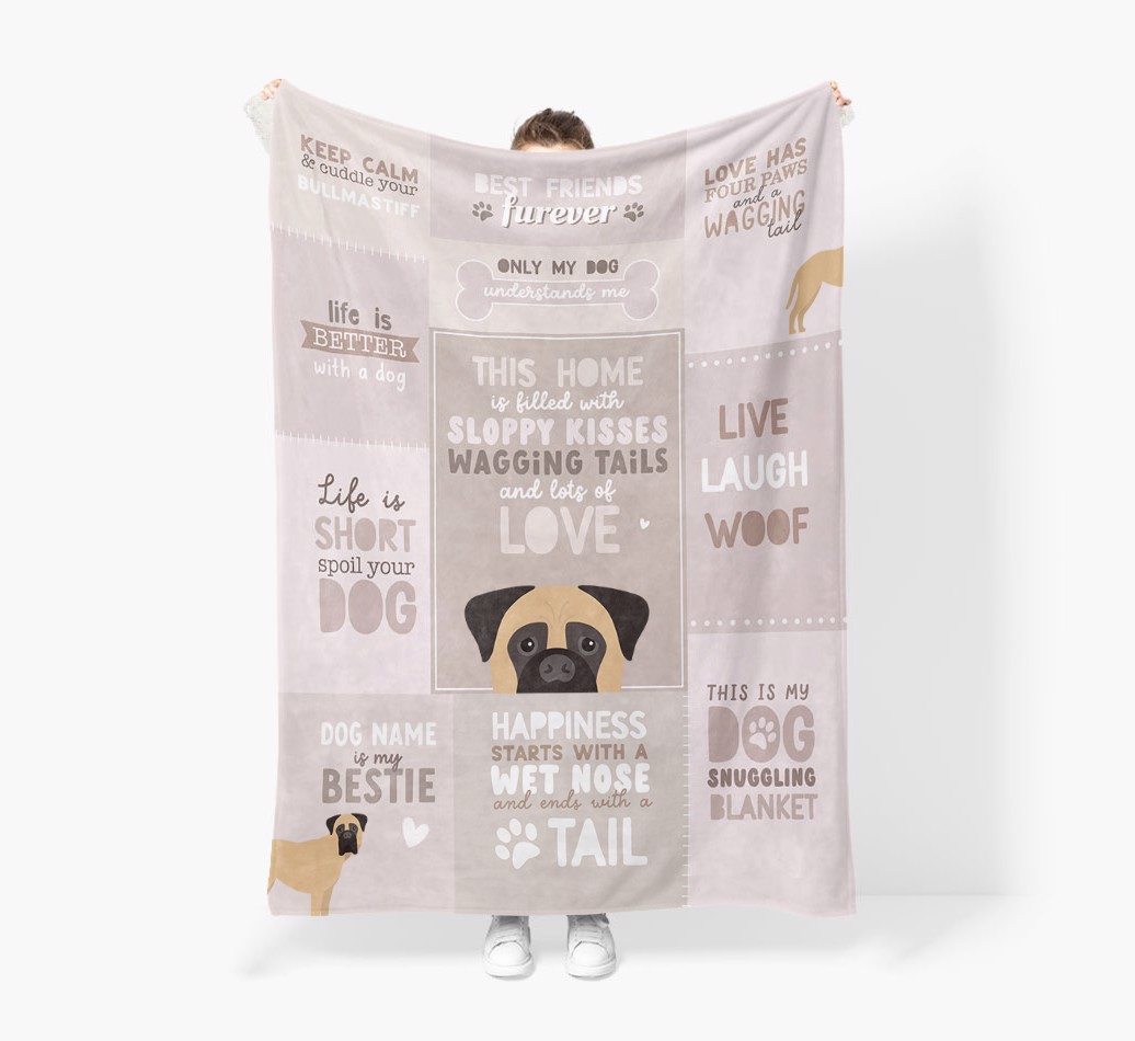 Filled with pawgeous quotes about your furry friend, this blanket is the perfect way to make naptimes with your Bullmastiff the coziest ever.