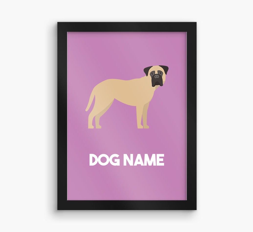 Personalized with Bullmastiff's name and icon, this print is available in a range of colors to suit your personal style. This woofly artwork is the perfect way to add a pop of colour and plenty of pawsonality to any room!