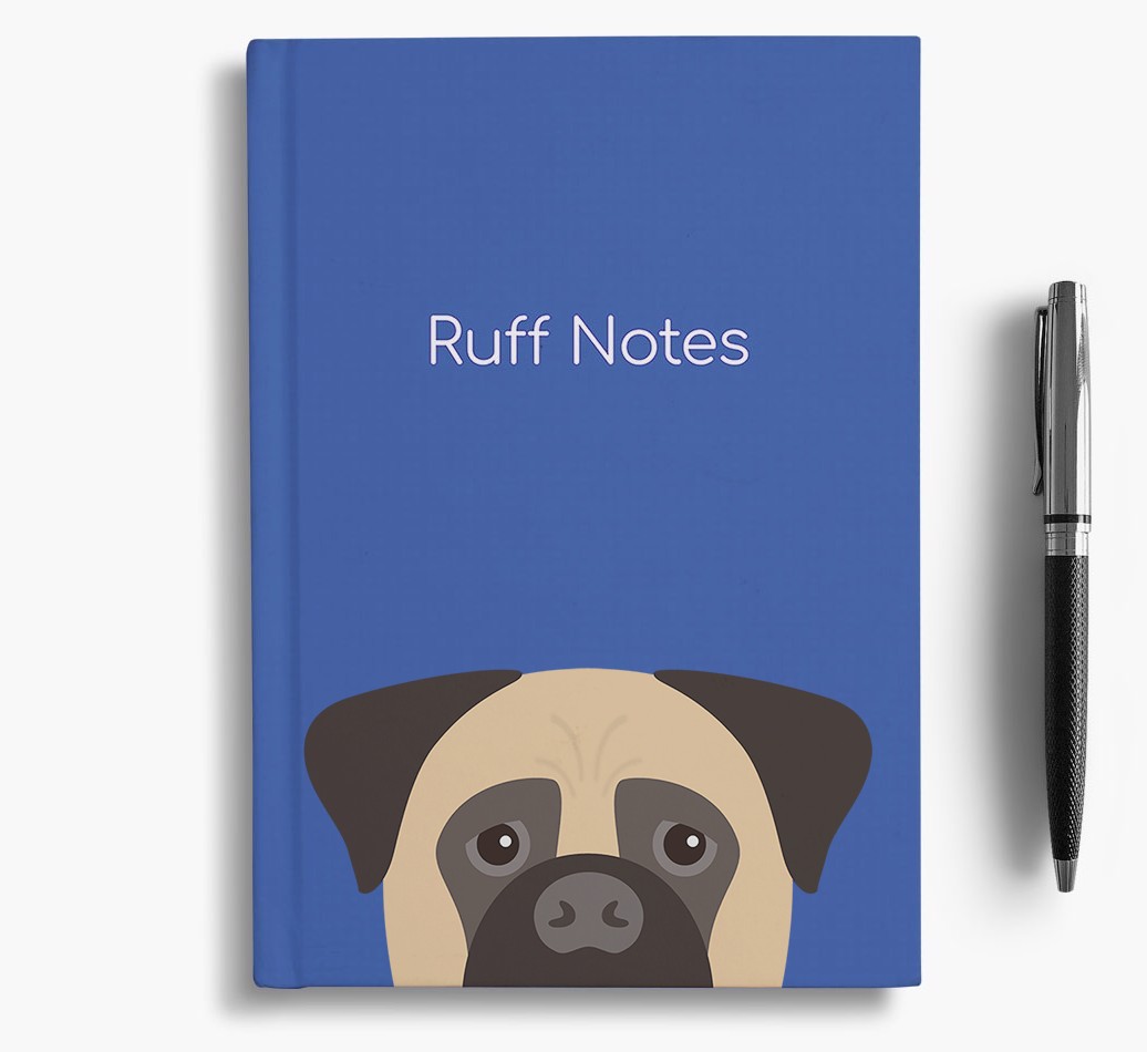 The front cover features our exclusive Bullmastiff peeking icon and is printed with the words, ‘Ruff Notes’, whilst the back is printed with the words ‘Live. Laugh. Woof.’.